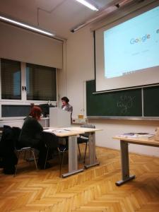 Seara a debutat cu 5 minute de limba română, un curs vesel depre limba română, susținut de lectorul de limba română la Universitatea din Ljubljana (ILR), dr. Ioana Jieanu. Evenimentul a fost continuat cu prezentarea dr. Agata Šega despre individualitatea limbii române în cadrul limbilor romanice. Doamna profesor a vorbit despre dialectele românei și despre subdialectele daco-românei, oprindu-se la anumite aspecte ale dialectului istro-român, folosit în câteva sate aflate la 100 de km de Ljubljana, în Croația, la graniță cu Slovenia.